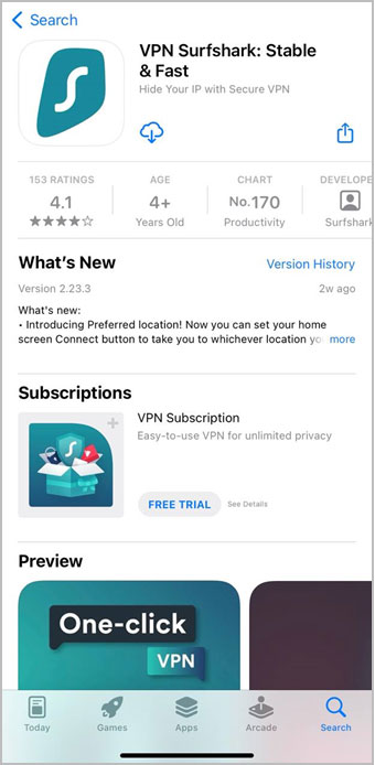 • The app will open and you can search Surfshark and download.